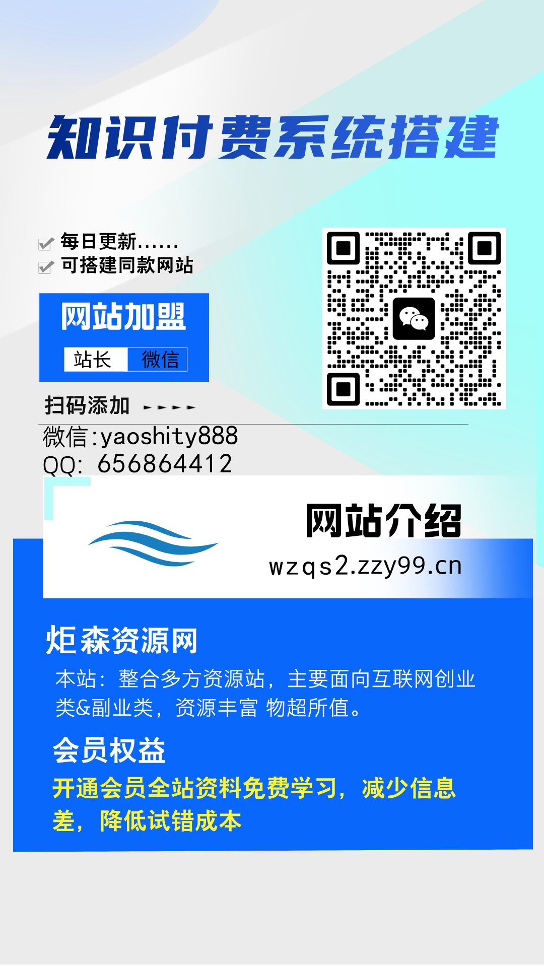 加盟炬森网创,加盟搭建同款知识付费资源网站,实现长期稳定被动收入~